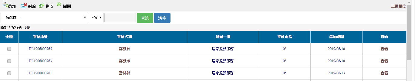 進去二級單位後,此畫面可以查詢相關二級單位訊息。