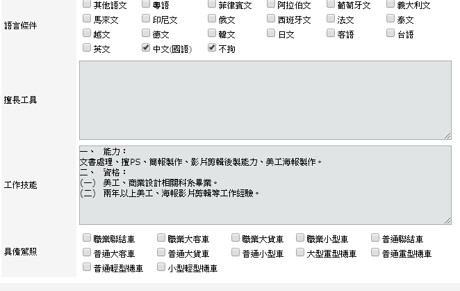 具備駕照:主要是外網招聘廣告註記用。