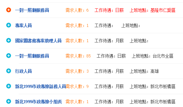 在職人員:可以看的出來本職缺有哪些人佔缺。