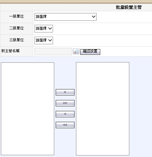 選擇所屬單位的人員後,再選定新主管人選後,進行批量設置新主管。