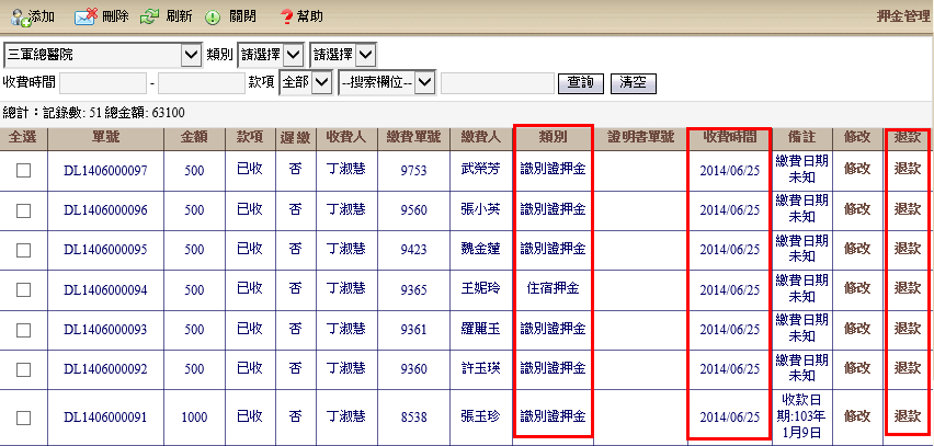 照服員管理 > 押金管理