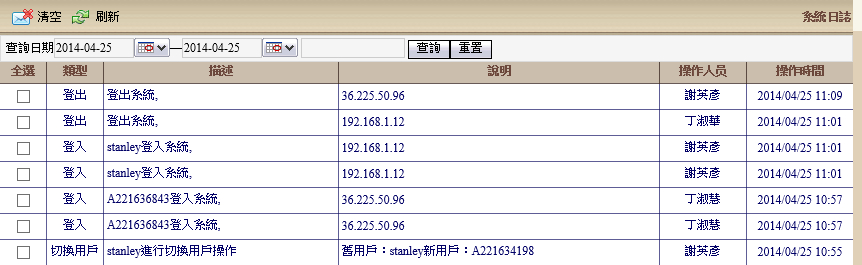 查閱相關之系統日誌,方便了解同仁使用系統的狀況,更可以分析當日的使用人數等。