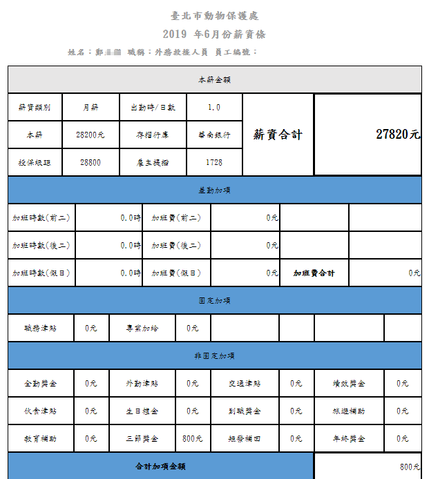薪資單結構共分為八個單元,第一為本薪金額、第二為差勤加項、第三為固定加項、第四為非固定加項、第五為差勤減項、第六為固定減項、第七為非固定減項、第八為調節金額,本薪裏頭是說明薪資結構,差勤加項則是指加班,固定加項則是每月大多會出現的津貼、獎金、補助等,非固定加項則相反,第五為差勤減項,主要是因為差勤緣故而被扣減薪資的項目,第六為固定減項,在此大多是法定提繳部份,第七為非固定減項,則是不一定每月會扣抵,第八調節金額,主要就是其他項目,可以藉由這欄位進行調整之目的,備註說明欄為則是補足前九項不足之處,需要說明的補足之處,讓員工一目了然。
