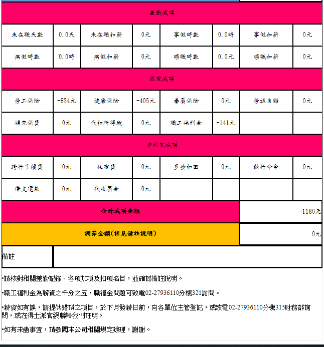 個人薪資查詢部分,可以看到自己每月薪資,薪資條上傳將會配合公司發薪政策,例如10號發薪,最遲於一週將會上傳薪資條,請同仁多加利用薪資查詢核對並列印。