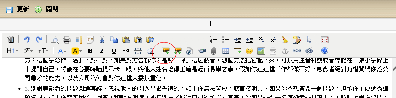 可以使用插入圖片,點選圓圈處圖示,上傳至服務器,完成之後點選更新即可。