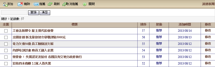 派遣新聞主要上圖之新聞,位置則在外網中間區塊,必須定期更新,更新後將會進行輪播