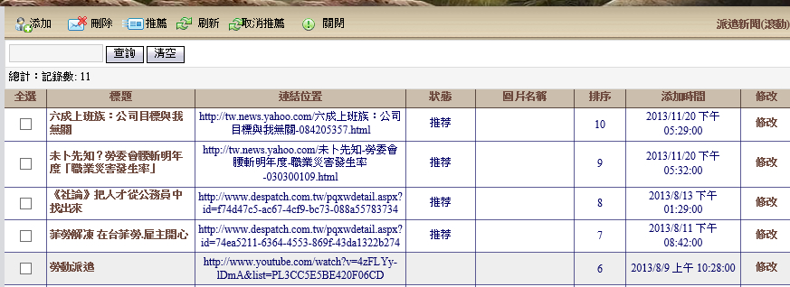 派遣新聞(滾動)主要是呈現在於外網,方式則是由右至左進行滾動,以跑馬燈的方式呈現。